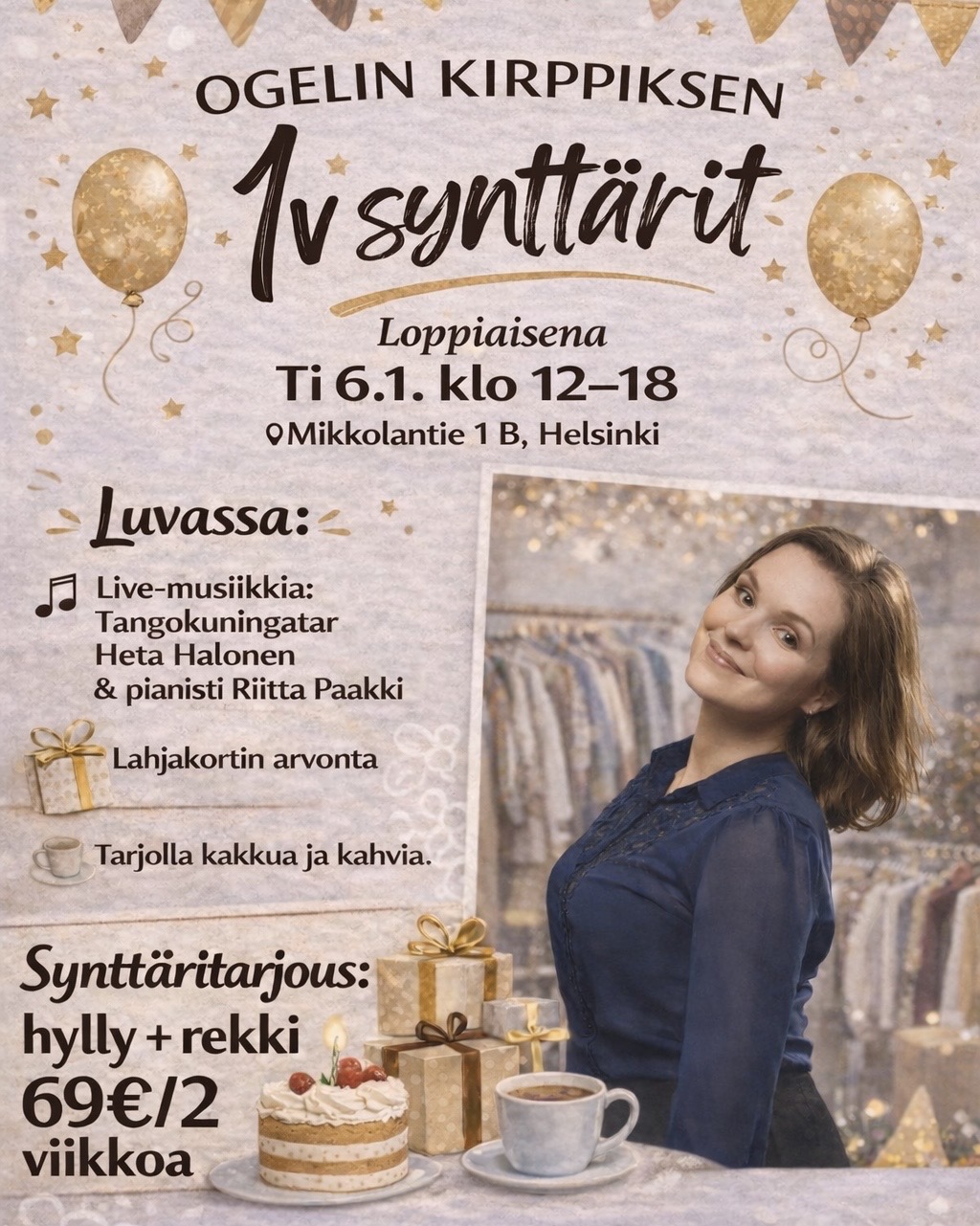Loppiaisena Ti 6.1 klo 12.00 - 18.00 luvassa live-musiikkia ja kakkutarjoilua kirppiksellä. Arvotaan myös kirppislahjakortti!