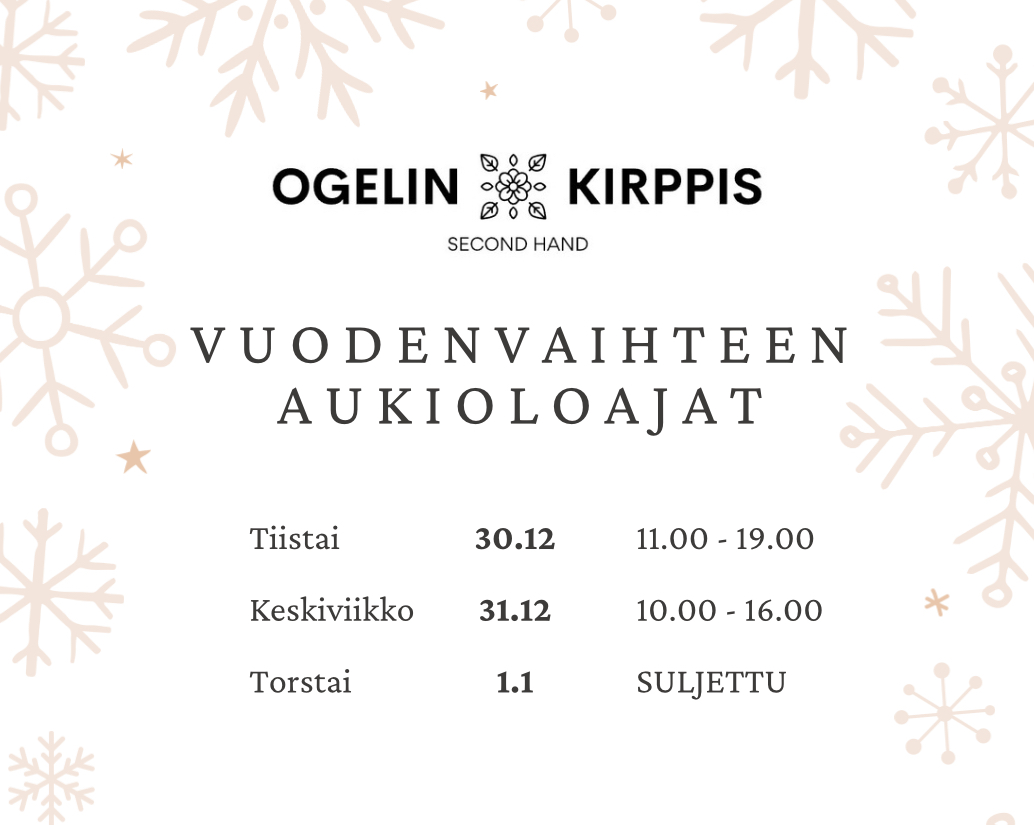Varauksen voit tehdä sähköpostilla info@ogelinkirppis.fi tai soittamalla puh. 0505688865